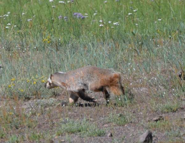 | Notes: | This badger seemed unsure what to do. He left the den area several time venturing a litter farther each time until finally continuing across the field. |