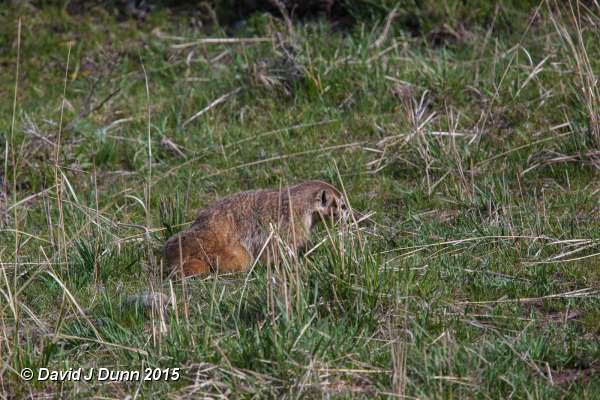 | Notes: | Badger was seen digging about 30' on the north side of the Larmar road. It would dig for a few seconds then look around and go back to digging. This didnt appear to coincide with cars going by or any other human distraction. I was with one other photographer at the site. Badger continued this activity for about 5 minutes then ran off in a zig zag pattern up the hill to the north. |